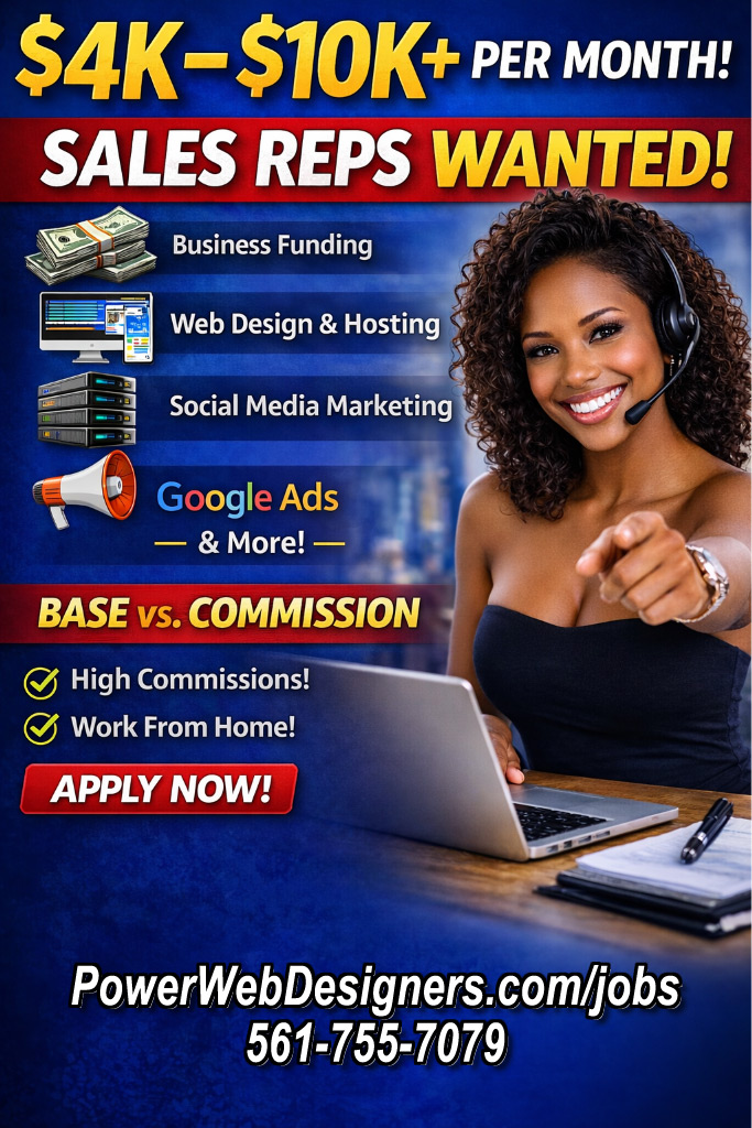 Sales Reps Wanted – Website Development – Marketing Solutions – Business Funding | $4K–$10K+ Per Month